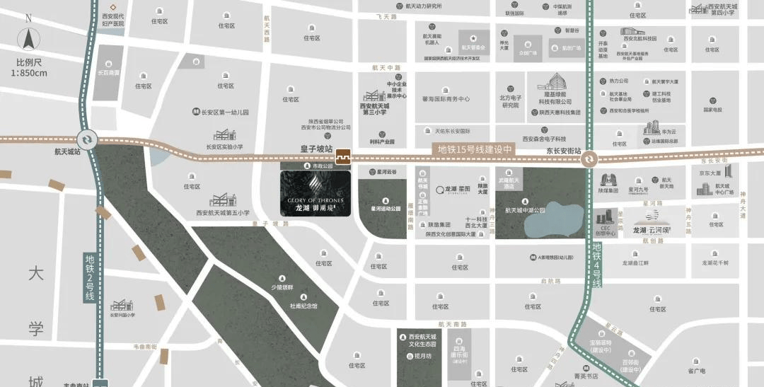项目北侧为口袋公园、一之隔星河活动公园、1KM内航天城中湖公园,一坐换乘4号线坐李家村);也处遗中轴文脉核心上,